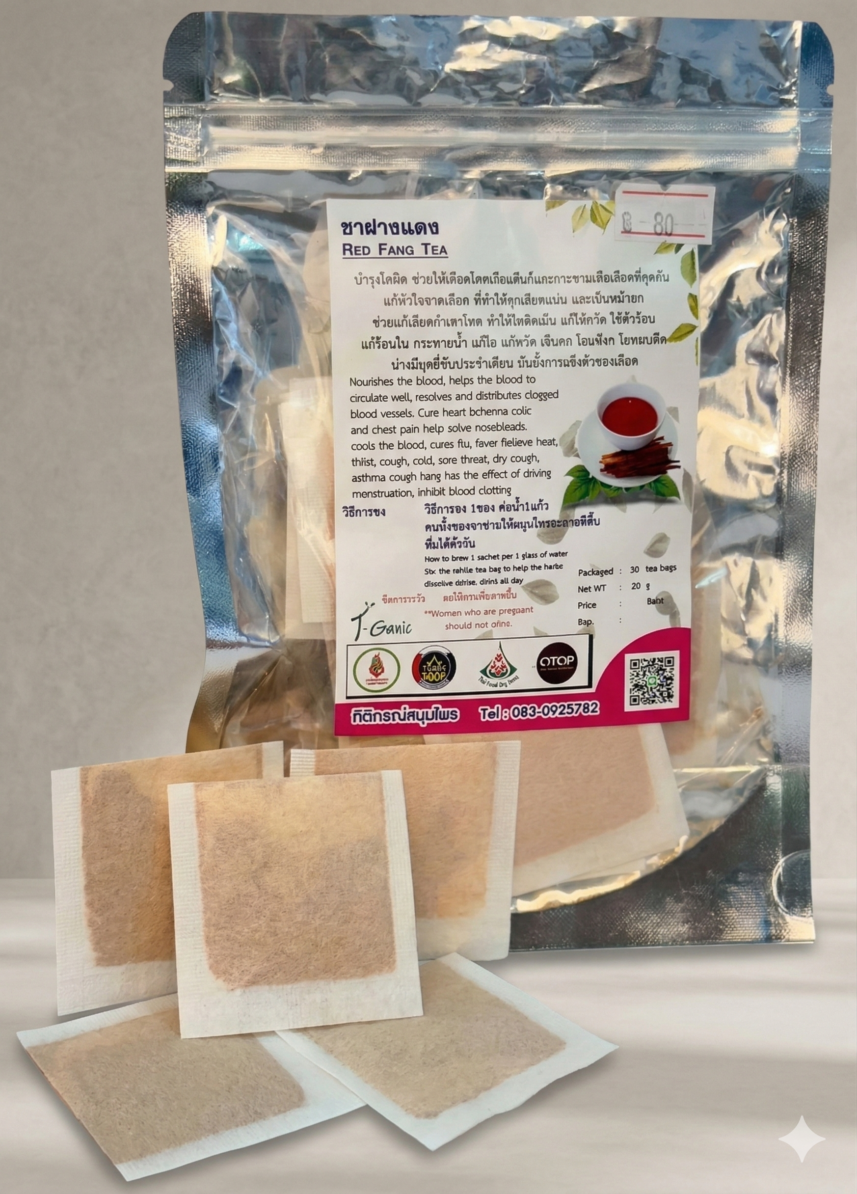 เป็นเครื่องดื่มสมุนไพรไทยที่ทำจากแก่นฝางแดง ซึ่งเป็นสมุนไพรที่มีสีแดงตามธรรมชาติ นิยมนำมาต้มเป็นชาเพื่อดื่มดูแลสุขภาพมาช้านานในตำรับสมุนไพรไทย