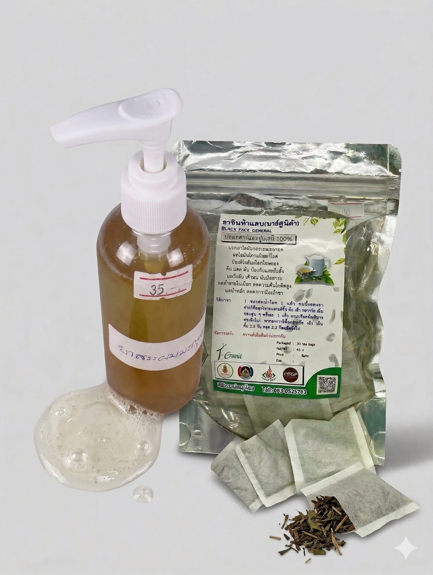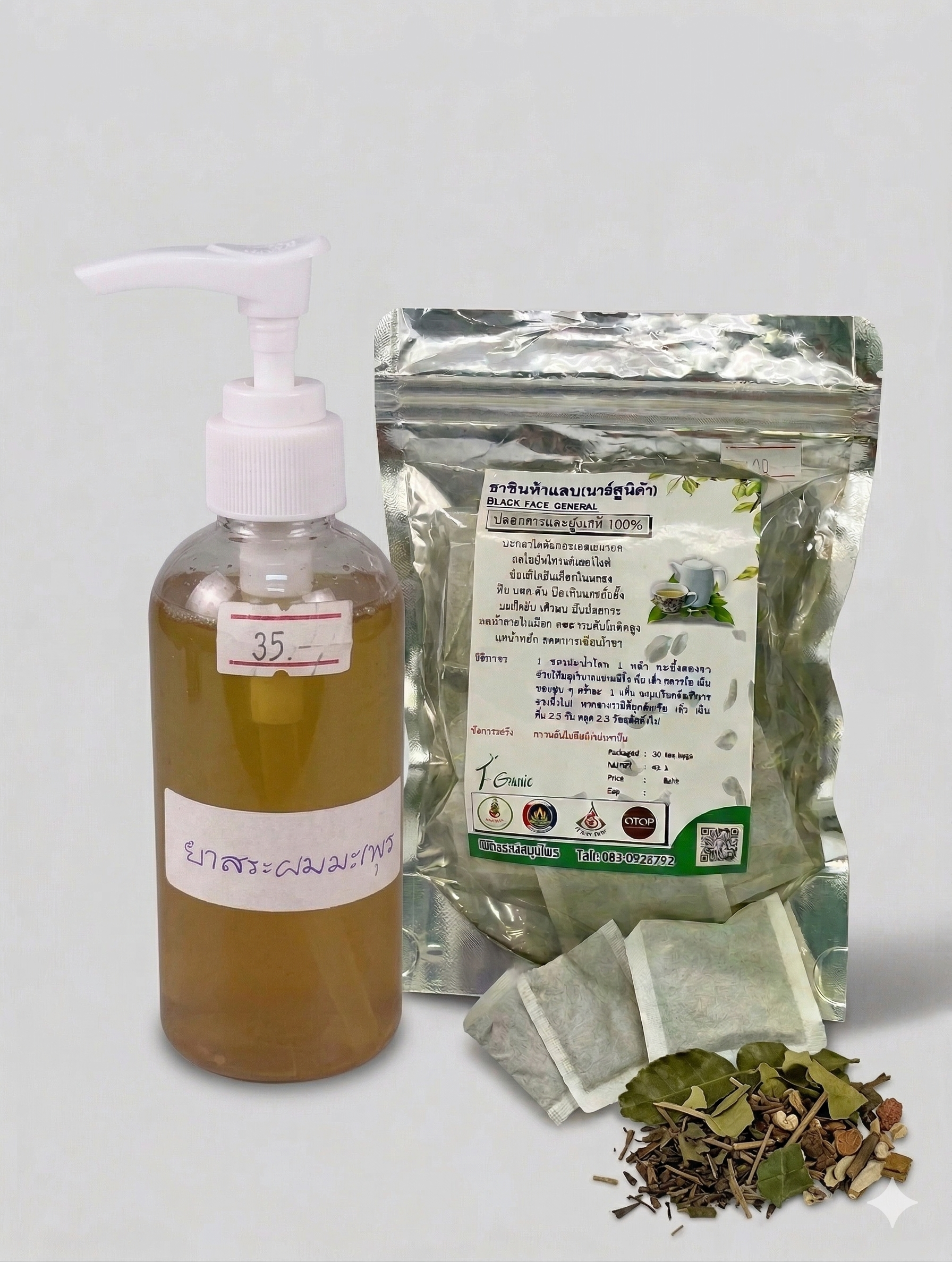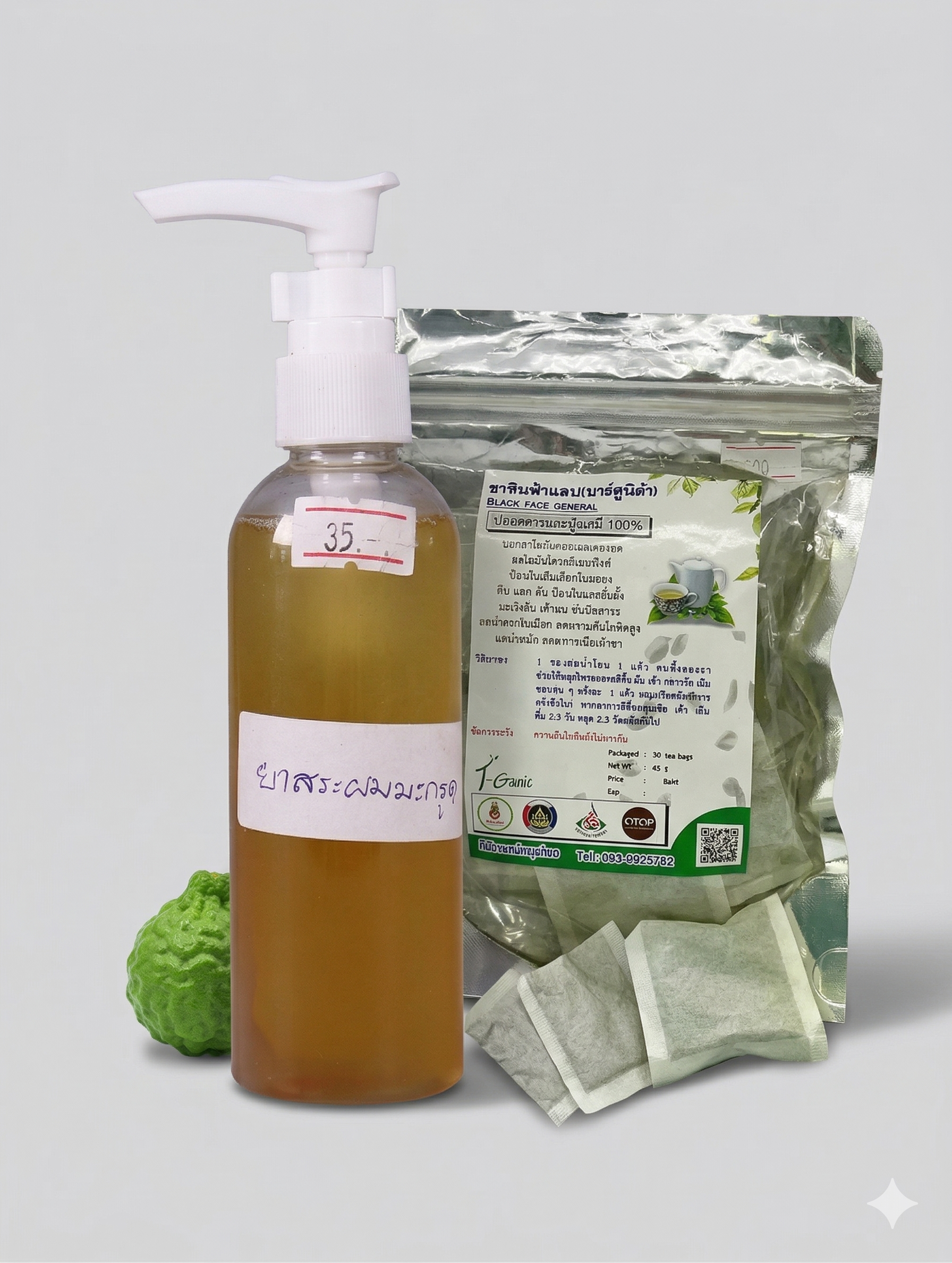 เซ็ตสมุนไพรที่ดูแลทั้ง “ภายนอกและภายใน” โดยยาสระผมมะกรูดช่วยทำความสะอาดหนังศีรษะ ลดรังแค และบำรุงเส้นผม ส่วนชาหินฟ้าแลบช่วยฟื้นฟูร่างกายจากภายใน เสริมสมดุลสุขภาพโดยรวม
